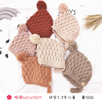 % Tuyu Korean-style Children's Knitted Hat Autumn/Winter Wool Ball Lined Ear-flap Hat Warm Handmade Hat Wholesale $18.18 USD $27.27 USD Go To Store