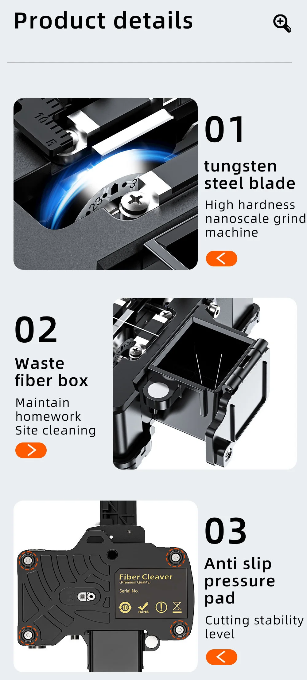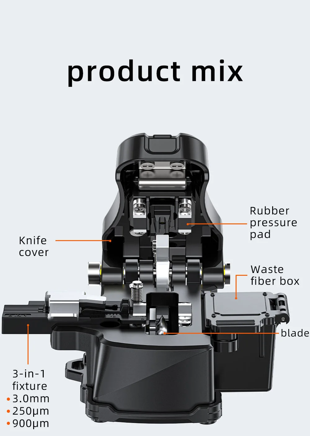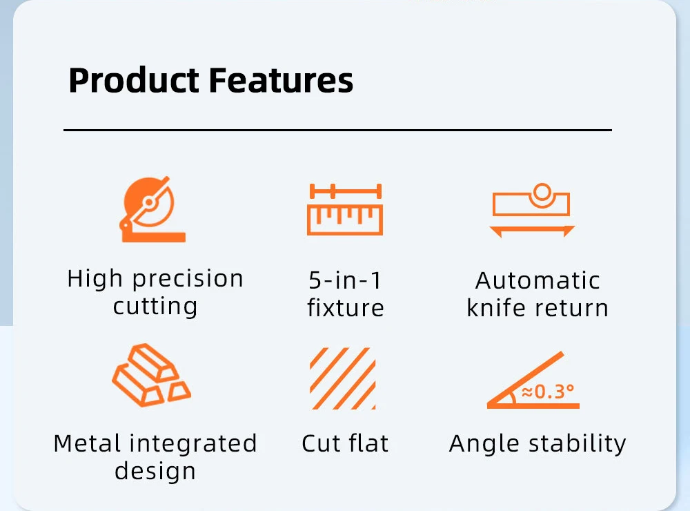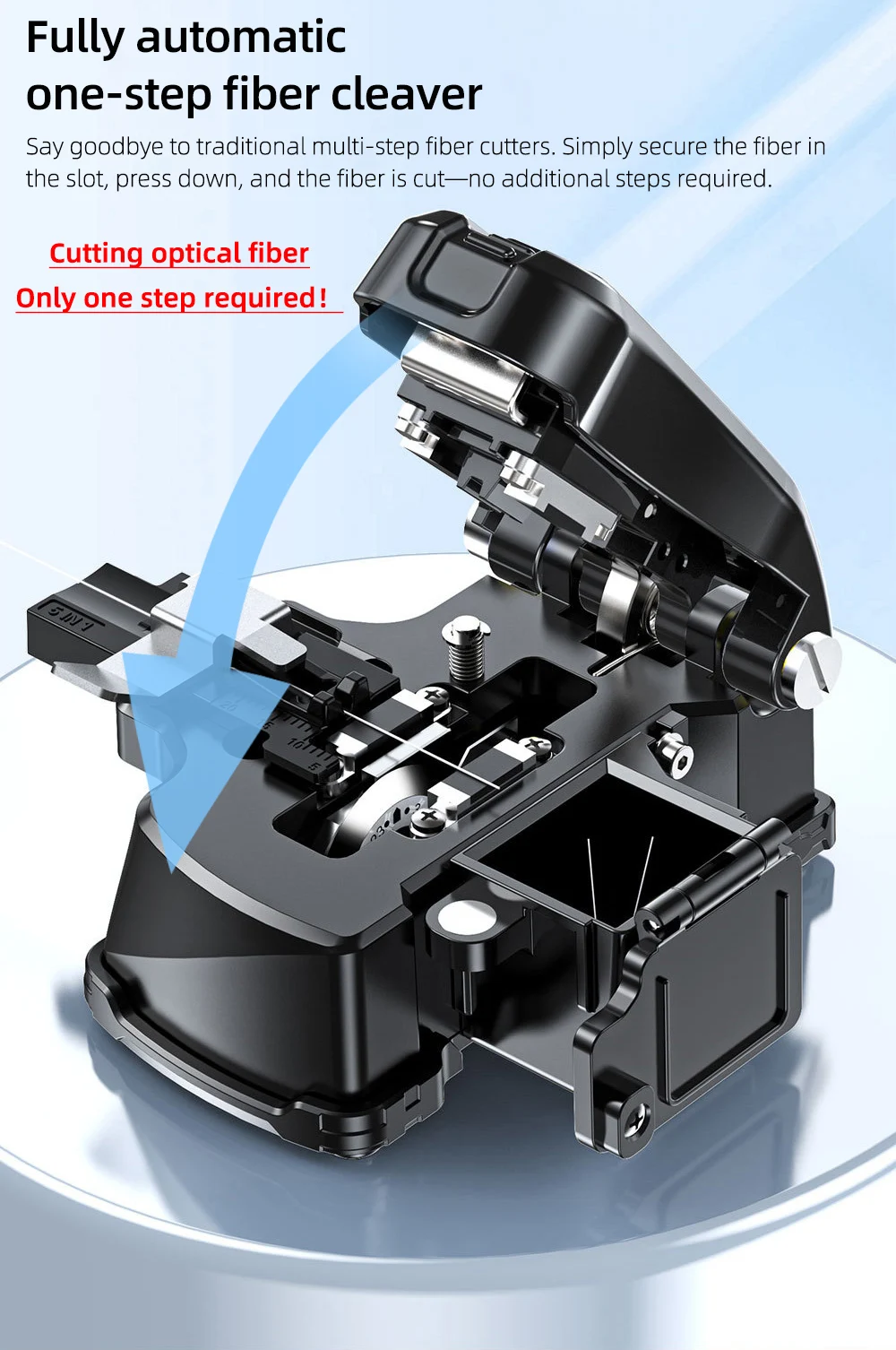 Say goodbye to traditional multi-step fiber cutters. Simply secure the fiber in the slot, press down, and the fiber is cut—no additional steps required.