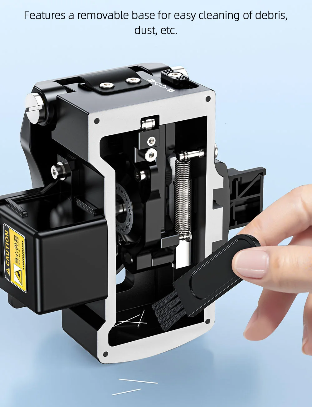 This fully automatic one step fiber cleaver allows you to complete the cut simply by pressing the top cover, without having to push the blade slide. It automatically resets when you release the top cover, eliminating the need for manual reset.