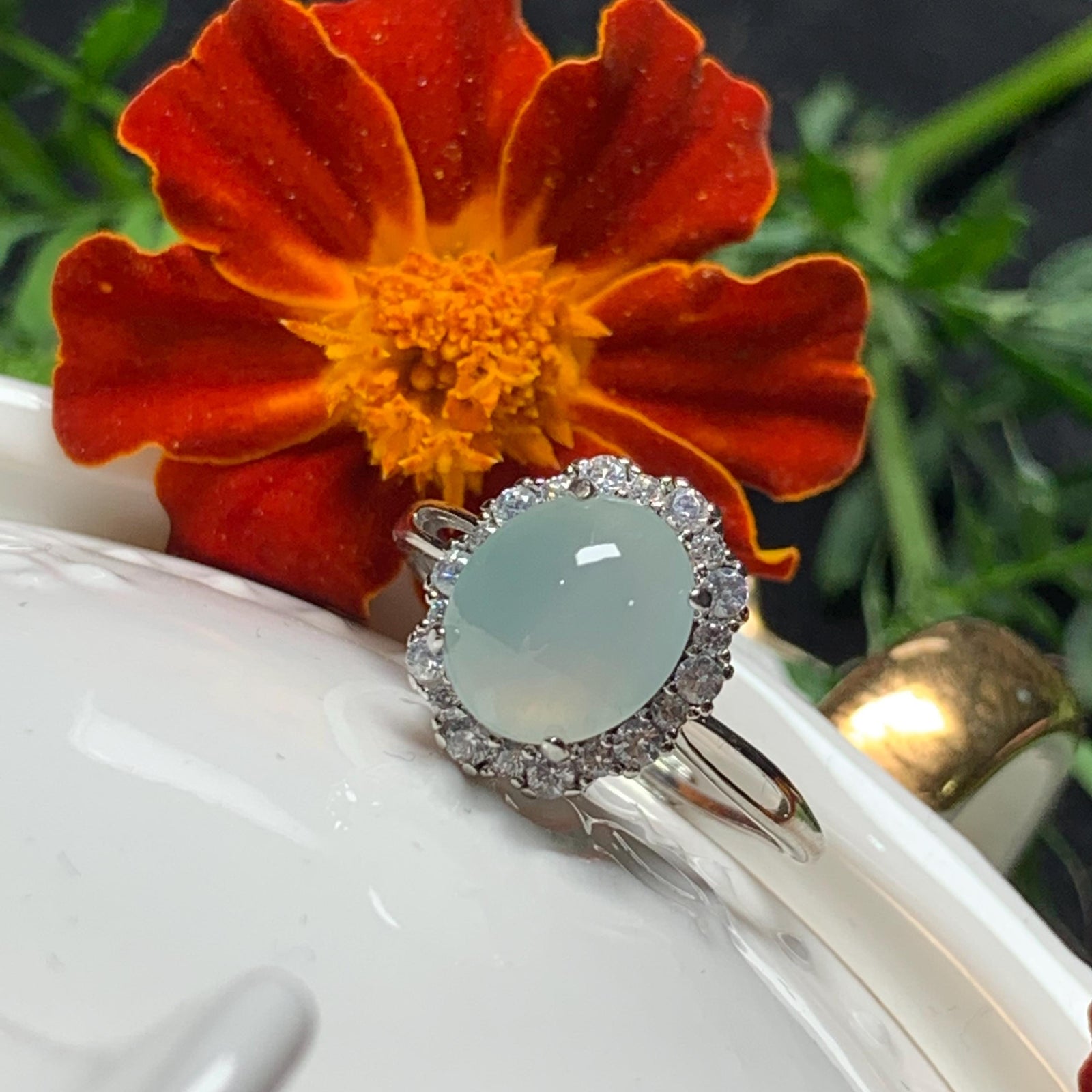 Certified Elegant Natural Untreated Burmese White Icy Jadeite Zircon Set S925 Sterling Silver Ring Engagement, Wedding, Any Occasion SL249X8