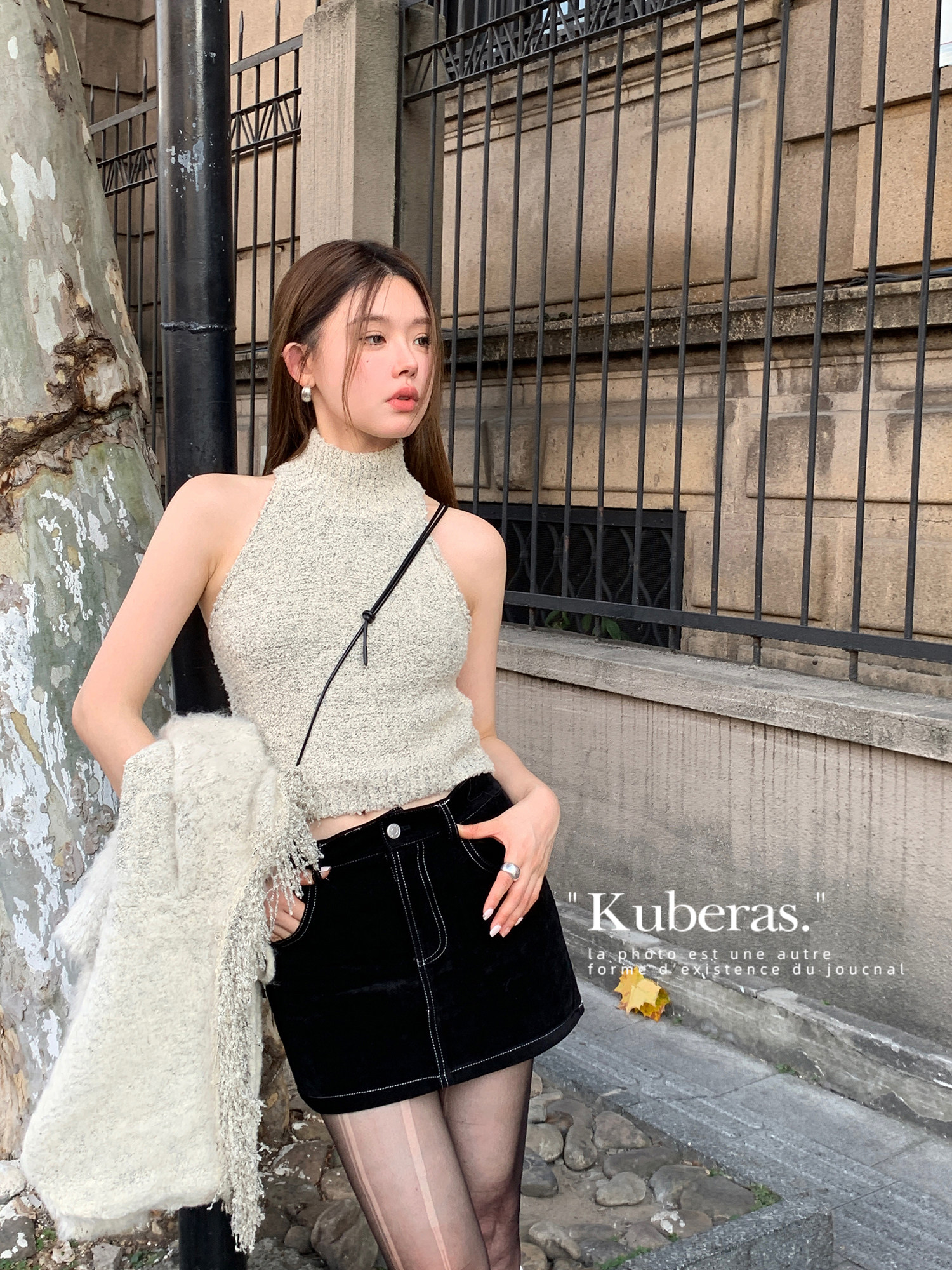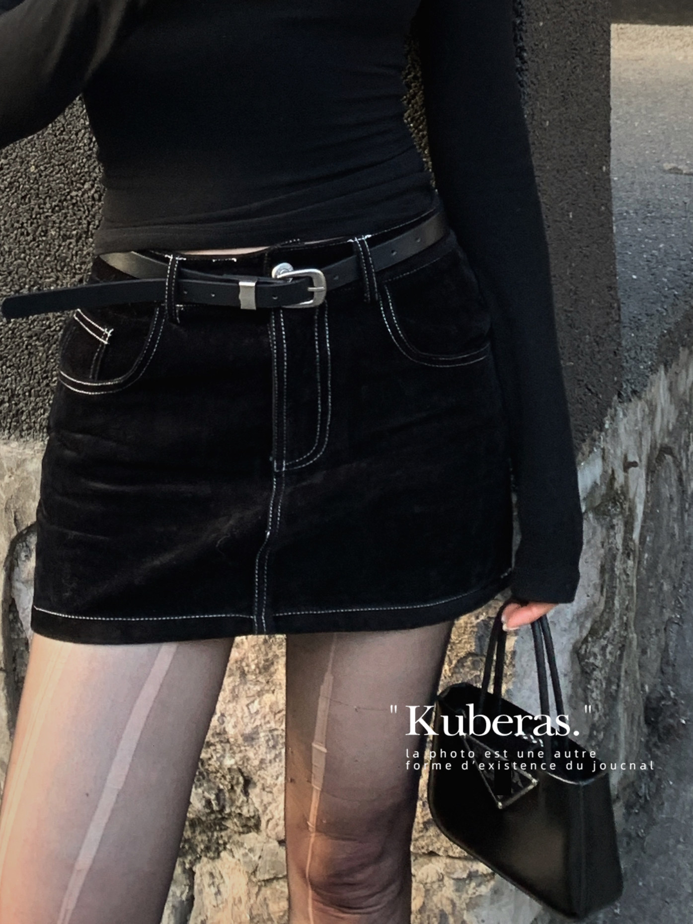 -33%Chamas Fashionable Suede Pressing Line Black Dress