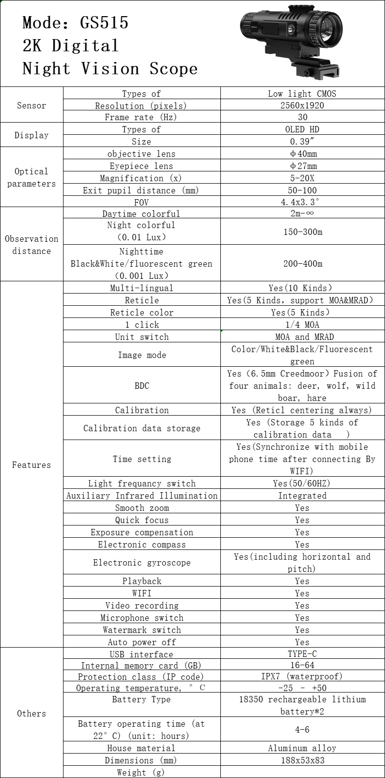 Advanced Stabilization and Frequency Switching: Featuring a built-in gyroscope for stability, the scope supports 60Hz and 50Hz frequency switching, making it adaptable for recreational use.