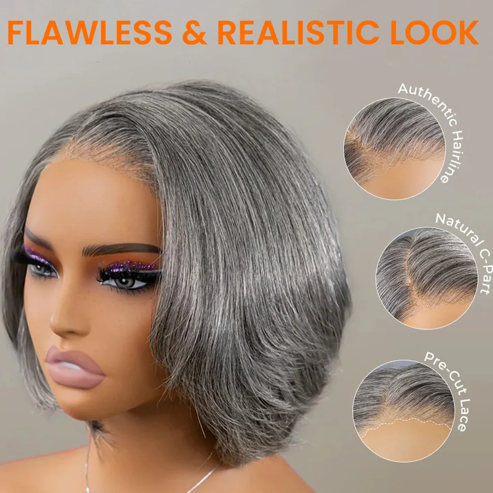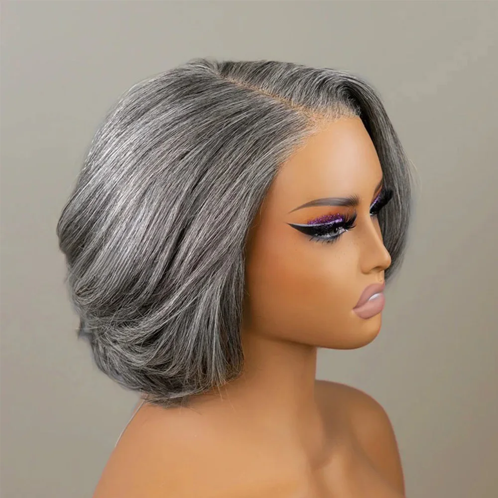 -33%Glueless Lace Front Grey Human Hair Wigs