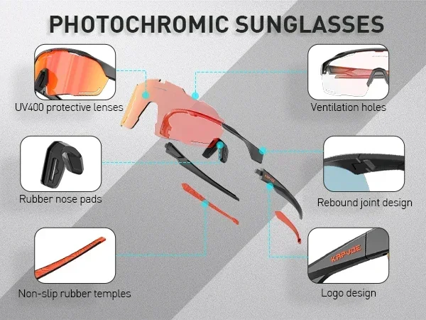 -33%Kapvoe Red Photochromic Cycling Sunglasses for Men Blue Photochromism Glasses Cycl Mountain Eyewear Sports New Bicycle Goggles