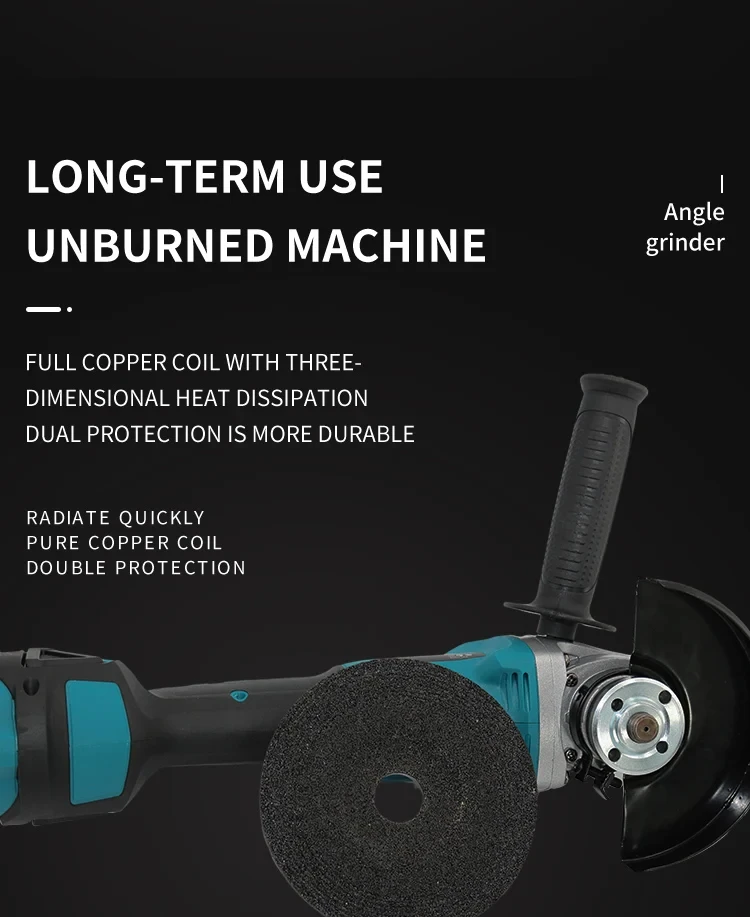 Equipped with a powerful brushless motor, this angle grinder ensures efficient performance and long-lasting durability.