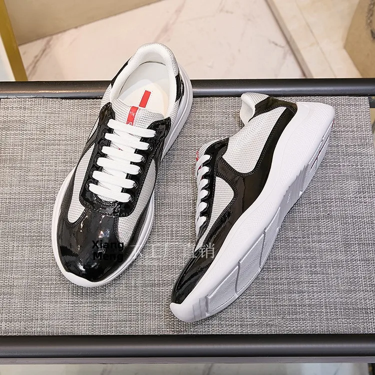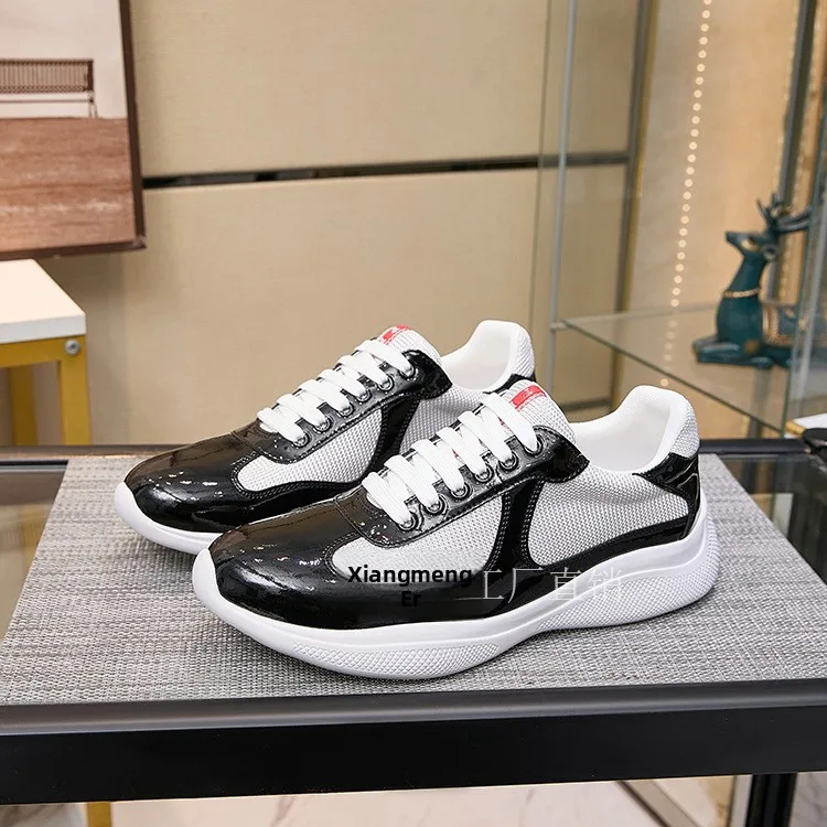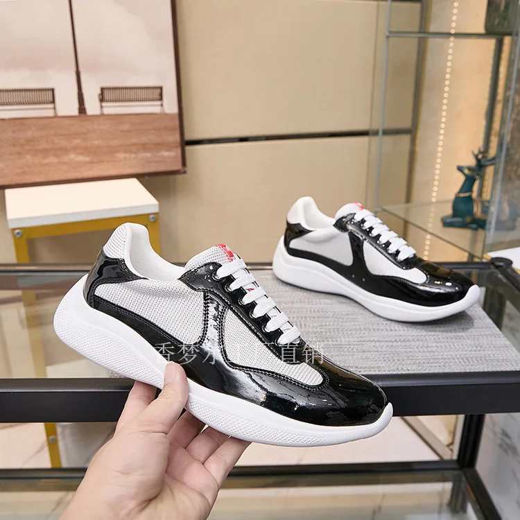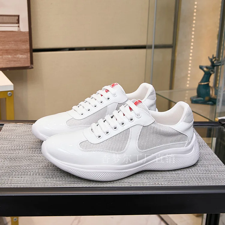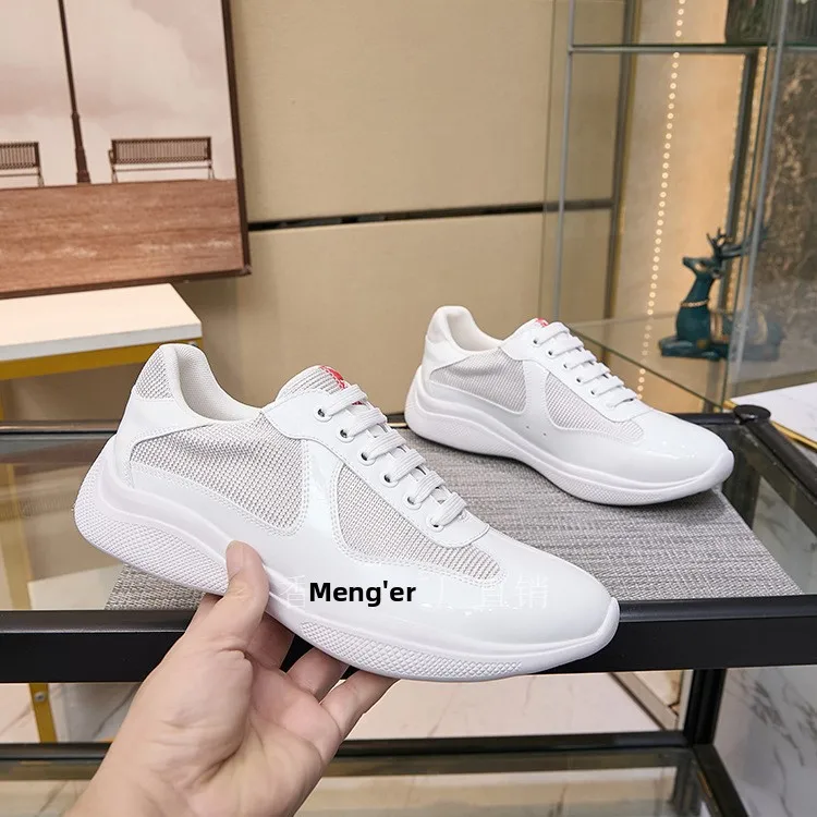 P Home Painted Leather Mesh Breathable Casual Sports Men's Shoes Thick Bottom Large Size Trendy Low Help Couple Style