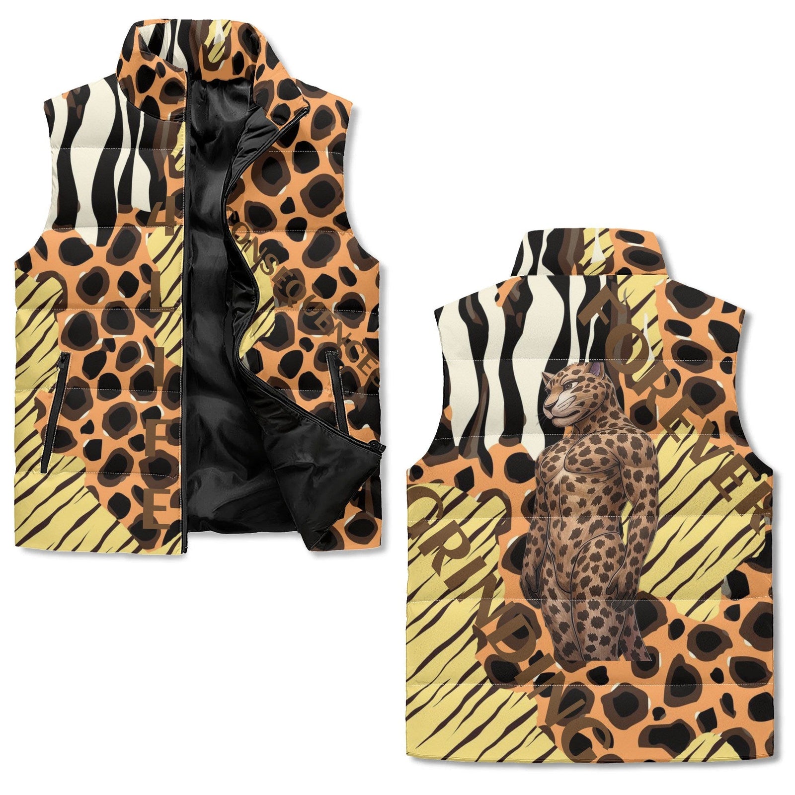 Multi-Print Safari Quilted Puffer Vest – Tiger, Zebra & Leopard Streetwear