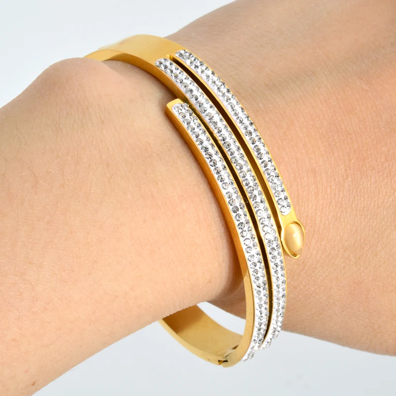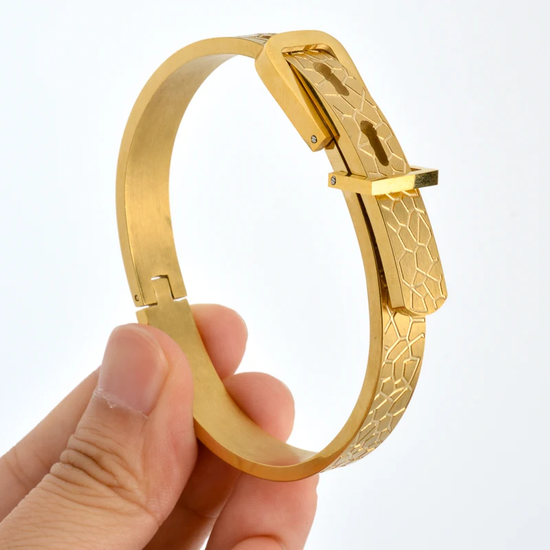 -33%Sunny Jewelry Bracelet Stainless Steel Gold Color Zircon Bangle Belt Lock Numerals Geometry Hand Jewellery Party Festival Gift