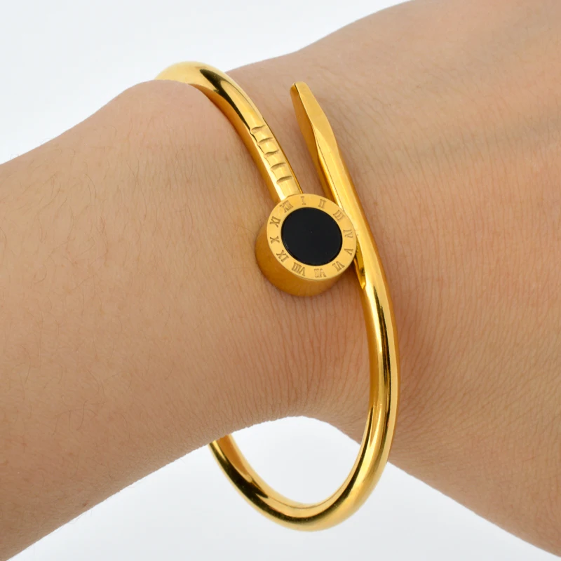 Sunny Jewelry Roman Numerals Lock Belt Stainless Steel Zircon Bangle Bracelet Gold Color Bangle Geometry Romantic Hand Jewellery Party Gift