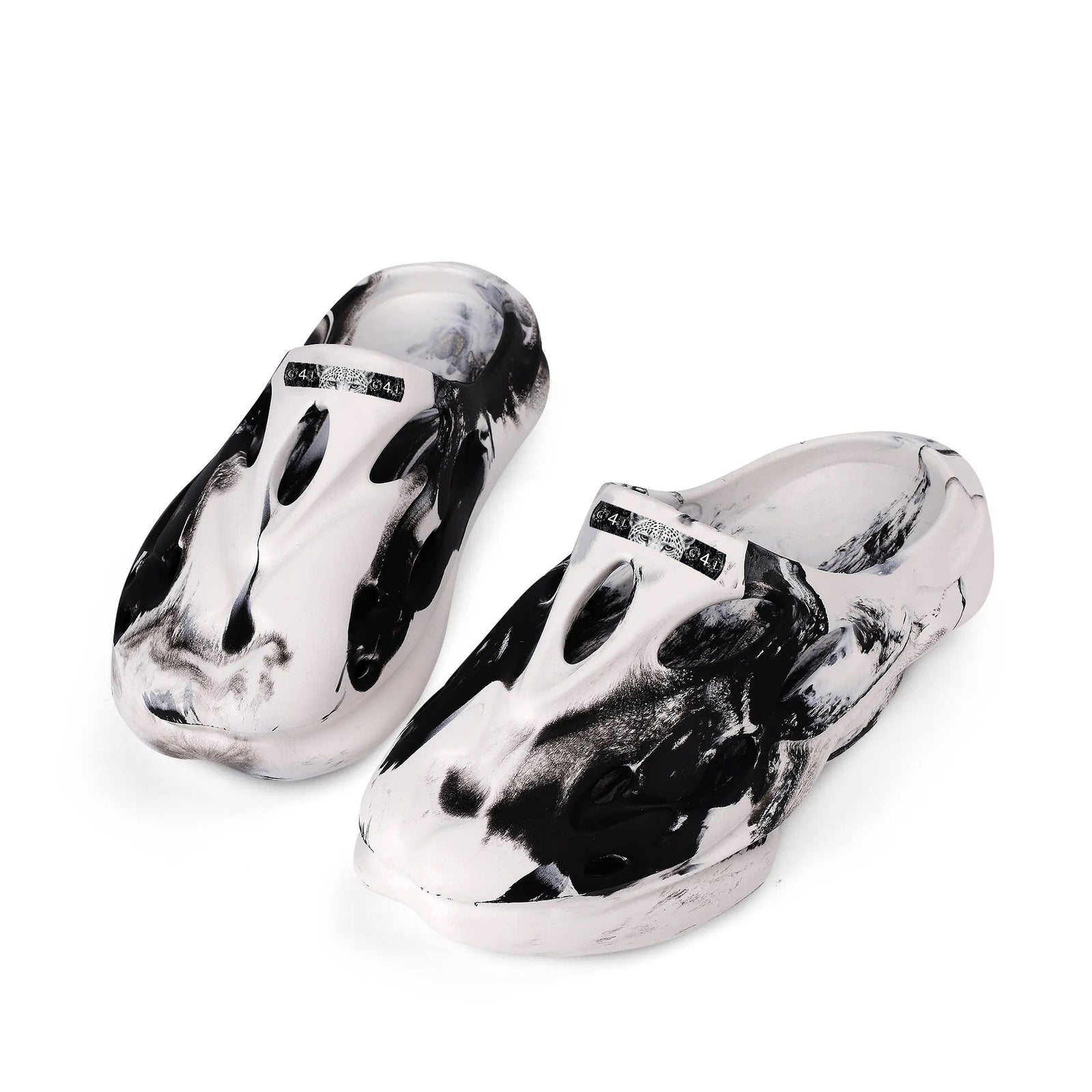 White & Black Swirl Pattern Clogs - Breathable Hollow Out Sandals with Custom Logo Option