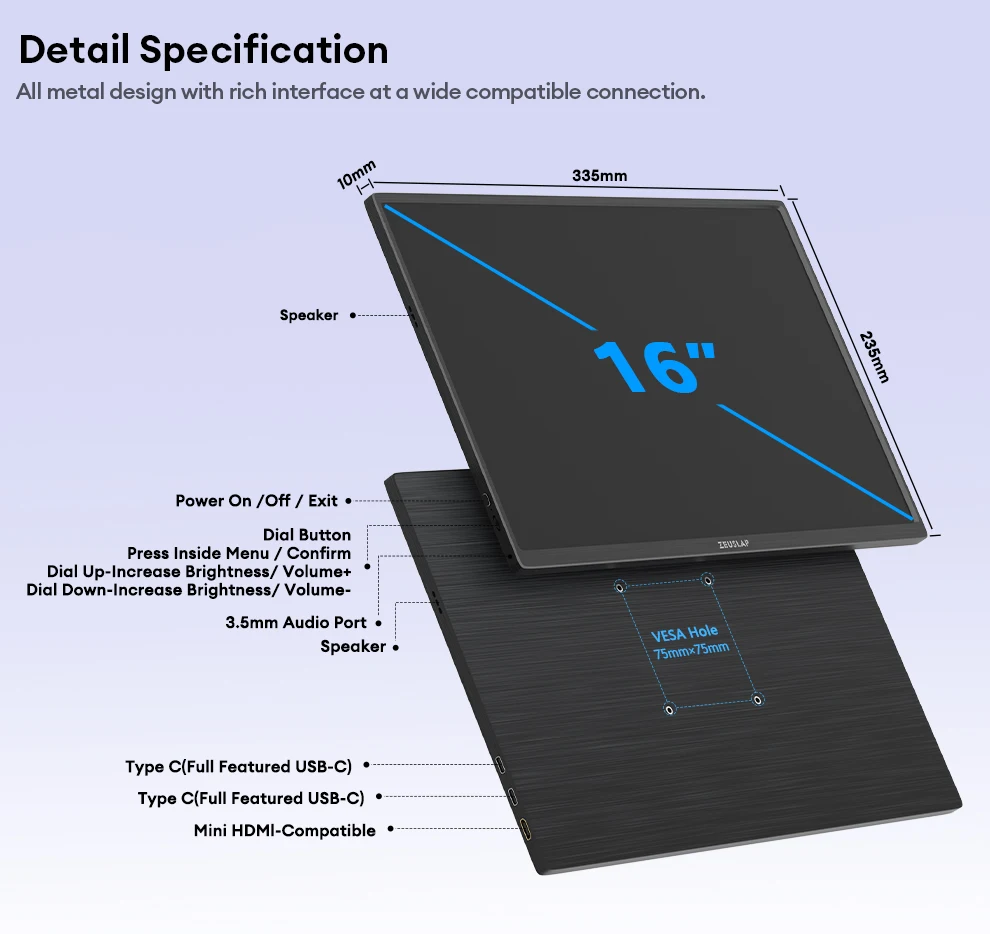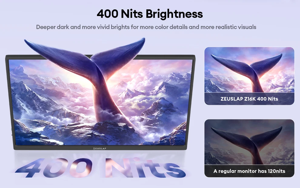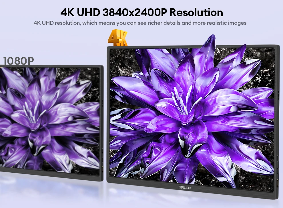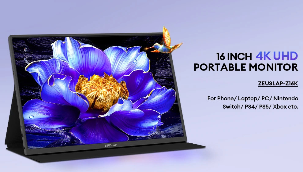 -33%ZEUSLAP-Z16K 16" 4K Portable Monitor 3840x2400 100% DCI-P3 Thunderbolt USB-C HDMI for Phone, PS5, Laptop PC Second Screen
